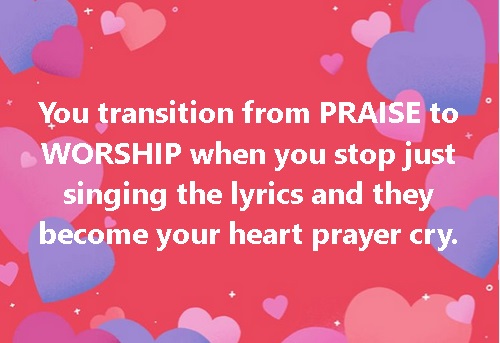 You transition from PRAISE to WORSHIP when you stop just singing the lyrics and they become your heart's prayer cry.